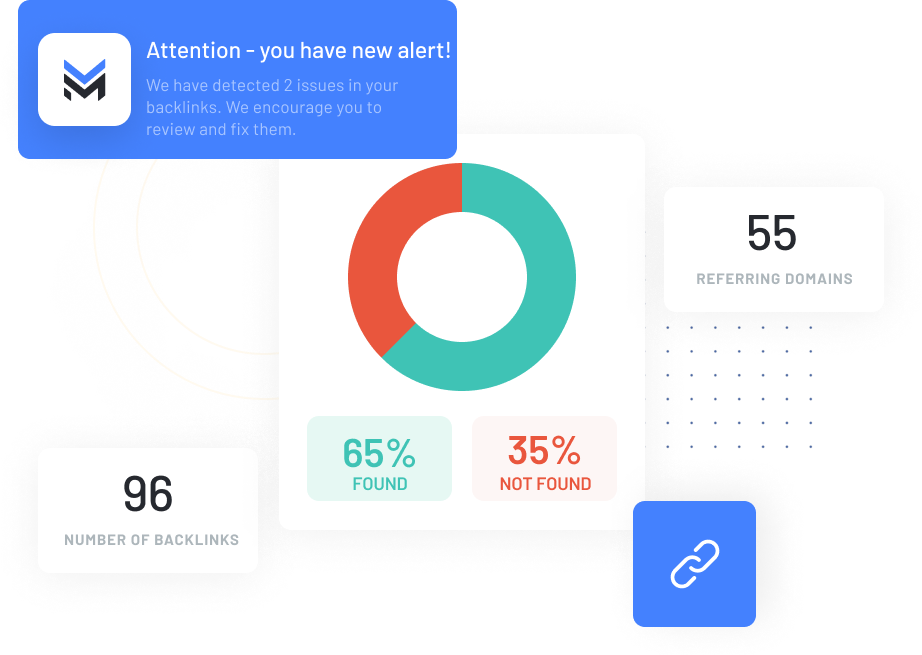 Fedezz fel új linképítési lehetőségeket, hogy megerősítsd a visszamutató link profilodat, és tudd meg a kapcsolatfelvételi adatokat, amennyiben lehetséges. Értesítést kaphatsz, ha visszamutató linkeket távolítanak el, hogy lépést tarthass a változásokkal, amint azok megtörténnek, és azonnal kapcsolatba léphess a weboldalak tulajdonosaival.