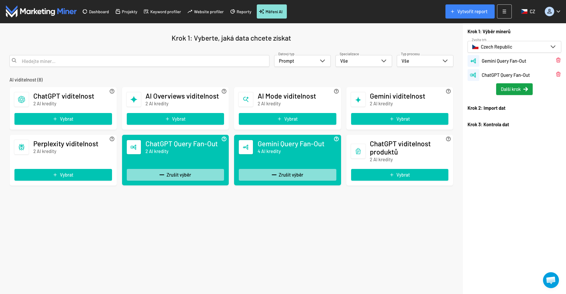 Nástroje v Marketing Mineru neustále zlepšujeme, a proto jsme analýzu skrytých dotazů rozšířili i na model Gemini. Vyzkoušejte si analýzu Query Fan-out na vlastních datech. Tento nástroj je součástí našeho doplňku pro měření AI viditelnosti. Získáte tak špičková data za zlomek nákladů, které byste zaplatili u zahraničních nástrojů.